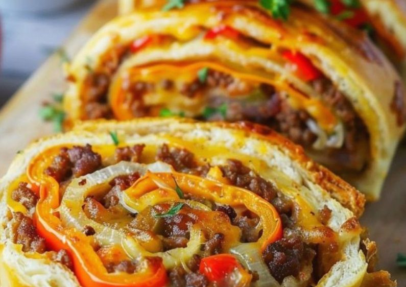 Originally popularized in New York, this creative dish is a cross between a stromboli and a calzone, filled with ground beef, melty cheese, and colorful veggies. It’s perfect for family-friendly comfort food nights, especially when you want something quick, satisfying, and crowd-pleasing.